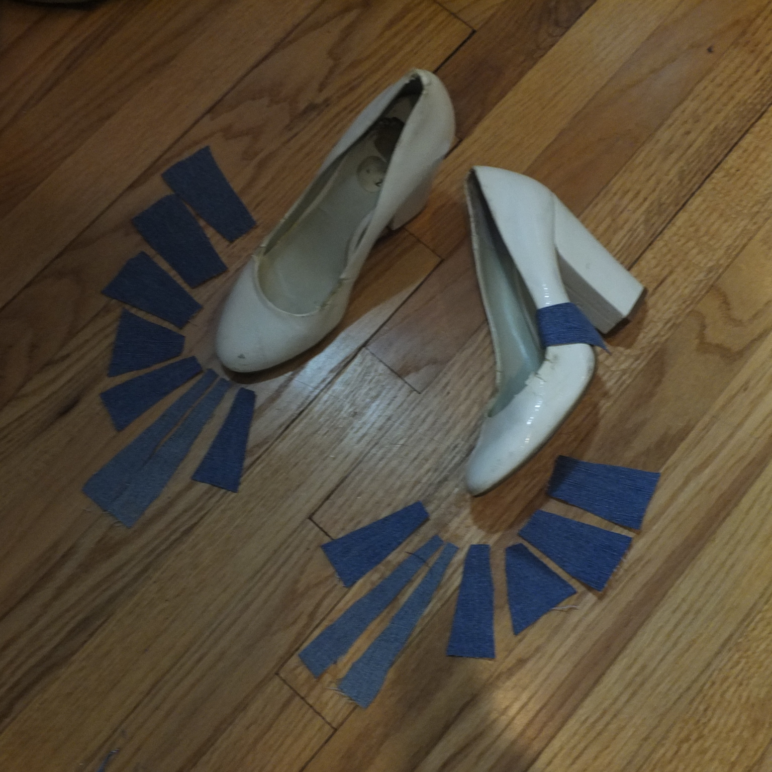 Then it was waiting time. Then it was time to leave, and still the glue wasn't dry enough. I brought the shirt with me, dangling it over the back of a car seat, while my boyfriend and I ran errands, and then finally, right before we arrived at the party, I changed into it.